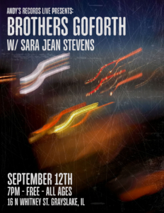 Join us for a night of upbeat country-rock ditties crafted in Waukegan, IL. Brother Goforth are back after a long hiatus and ready to rock! With special guest Sara Jean Stevens! All shows are FREE and ALL AGES!